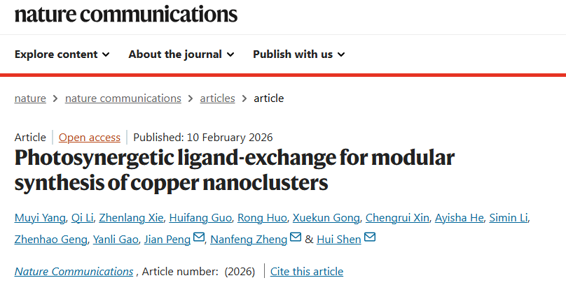 近日,我校能源材料化学研究院沈慧团队在国际顶级期刊Nature Communications上发表了研究论文“Photosynergetic ligand-exchange for modular synthesis of copper nanoclusters”,该研究为理性设计功能化铜基纳米材料提供了崭新平台,有望推动相关材料在清洁能源 91香蕉,光电转换,高效催化等方向的深入应用。